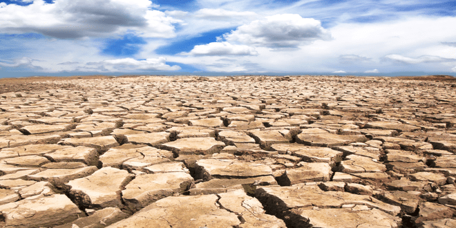Terra seca contra um céu azul com nuvens (Shutterstock)